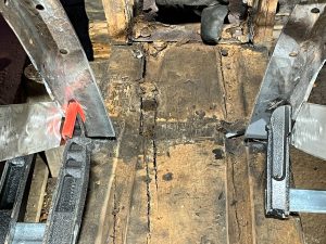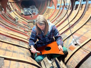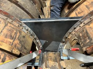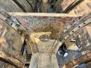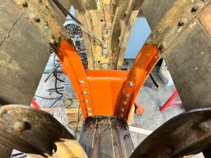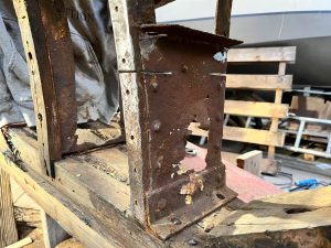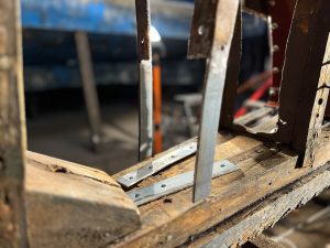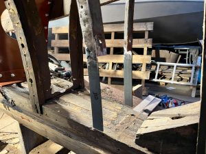 Wie sagt man: Das Aufwändigste an der Restauration eines Holzbootes sind die Metallteile. Und gerade bei der Holz/Metall-Kompositbauweise unseres Bootes sieht es so aus, dass die meisten Holzspanten noch gut sind, aber alles Metall, was im Kontakt mit Wasser war, sich zum Teil in Blätterteig verwandelt hat. Ich wollte es ja erst nicht glauben… aber wie man schon an den Bildern der Bestandaufnahme sieht, gibt es viel an Spanten und Wrangen zu flicken.
